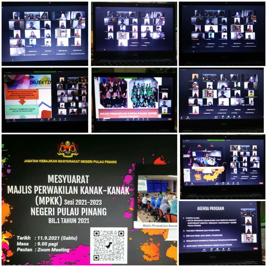 Mesyuarat Majlis Perwakilan Kanak-Kanak (MPKK) Sesi 2021-2023 Negeri Pulau Pinang Bil.1 Tahun 2021 telah dilangsungkan diatas talian melalui zoom meeting.